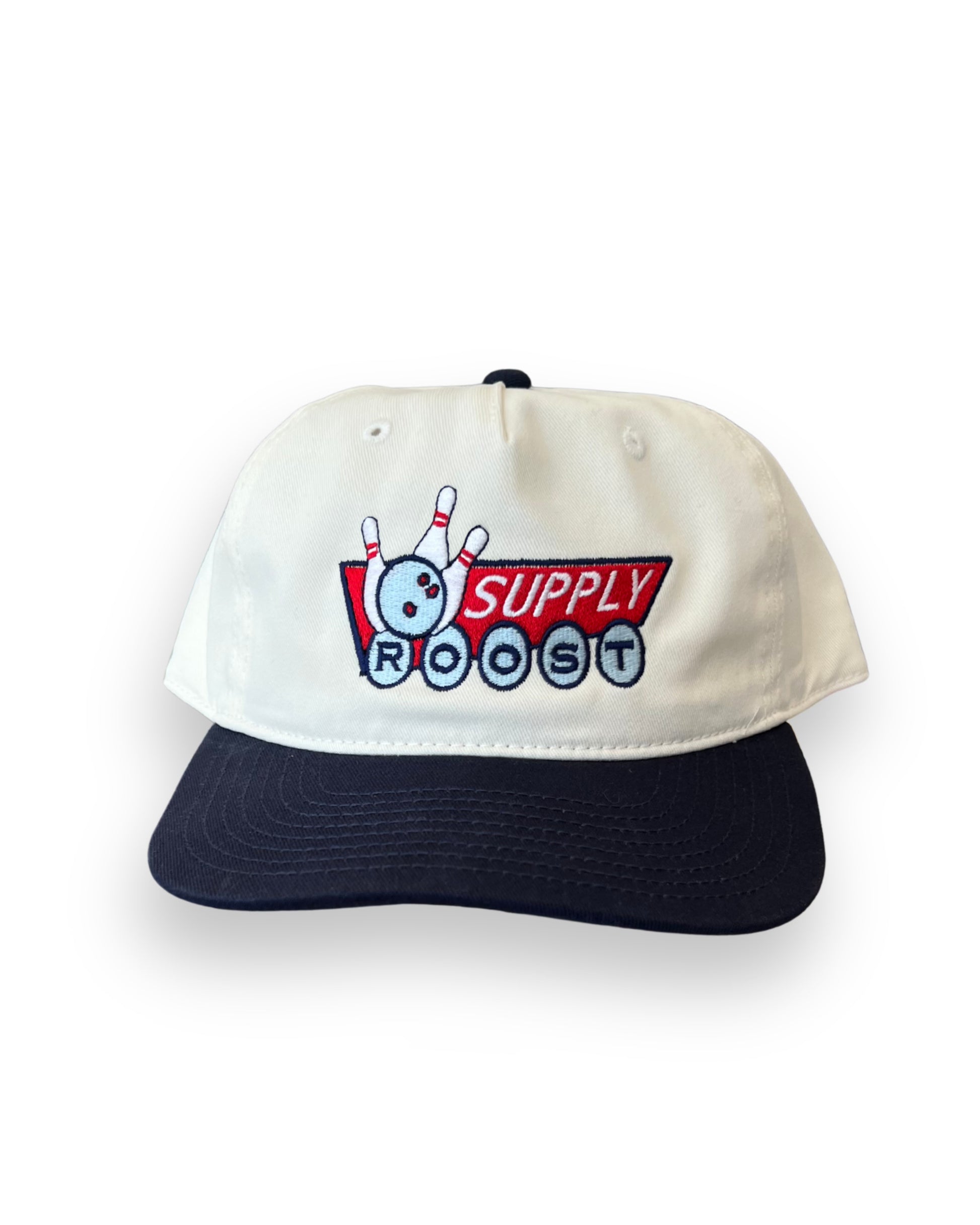 Strikeee! is an unstructured 5-panel hat. Two tone style with navy bill and natural cap. One size fits most. It’s a versatile hat for casual outings. The unstructured style allows for comfort and ease of wear, making it great for extended periods, whether during a night out with the buddies or a weekend kickback
